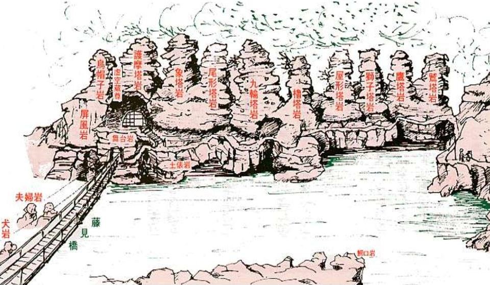 岩にはその形の特徴からさまざまな名前が付けられています。「屏風岩」、「烏帽子岩」、「獅子塔岩」、「鷲塔岩」、「舞台岩」などがあります。ぜひ現地で確かめてみてくださいね♪