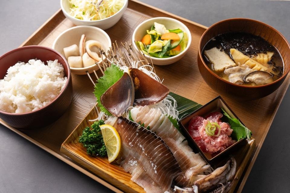 ランチは庄内産つや姫とイカを定食で楽しむ「イカ恋食堂 ごはん亭」へ