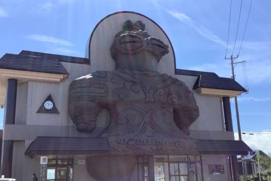 土偶を観るなら東能代駅で途中下車!町に向かって【しゃこちゃん】は立っています!