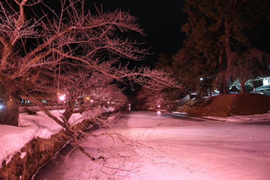 2025年~2026年!冬も青森県弘前公園で桜が楽しめる【冬に咲くさくらライトアップ】
