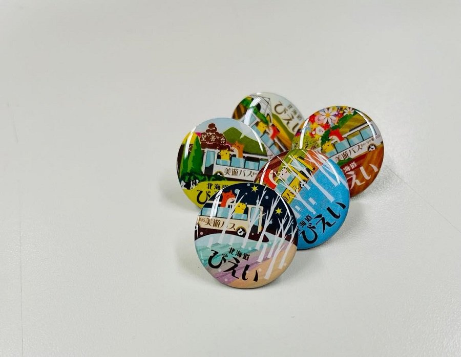 美遊バスご乗車の際、「ふらの・びえいフリーきっぷ」のご提示で、大人、こども共に「美瑛町オリジナルピンバッチ」2個をプレゼントします!