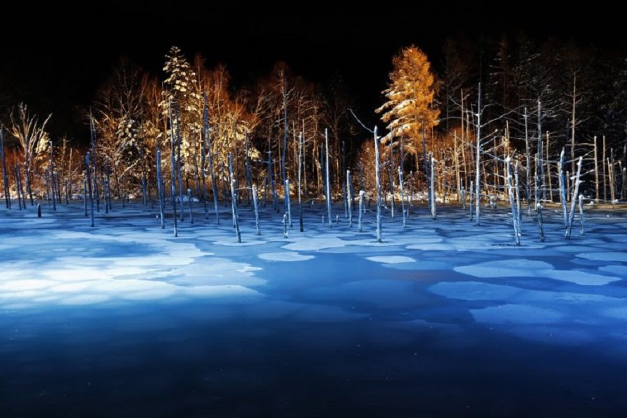 冬ならではの、青い池の色々な表情を見る事ができます。