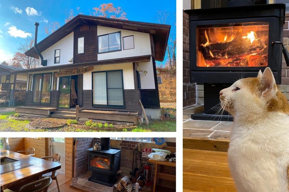 山道を抜けていくと木と田んぼに囲まれたコテージが見えてきます。「ファームinn緑の風」は人里離れた林の中に位置する2階建てコテージの農家民宿です。樺細工職人のオーナーご夫婦が温かく迎えてくださいます♪