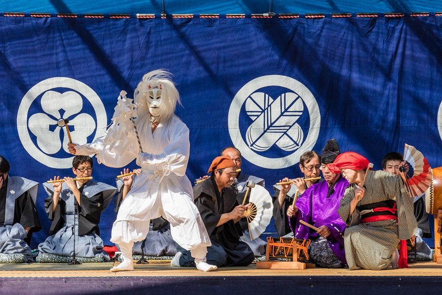 今では高原田(たかんだ)と下野(しもの)の2つの集落にある座元が、先祖伝来の芸能を誇りにし、情熱を燃やして受け継いでいます。