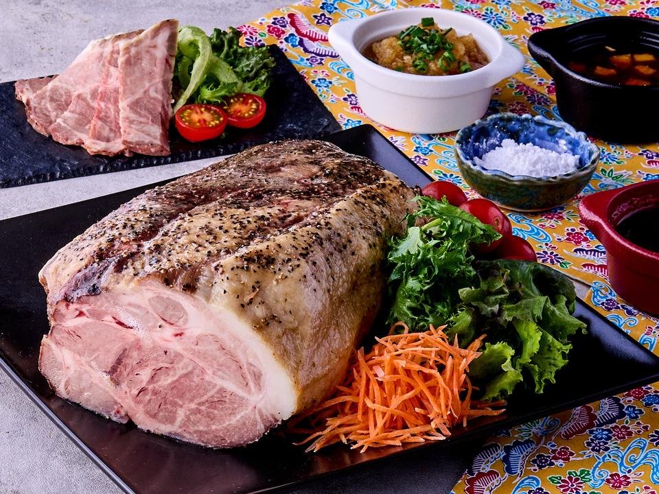 沖縄県が世界に誇る、やわらかな口当たりと甘みのあるとろける脂が特徴のあぐー豚を低温でローストしてご提供。沖縄の天然塩やホテル特製パインソースなどこだわりの味わいをご堪能ください。
