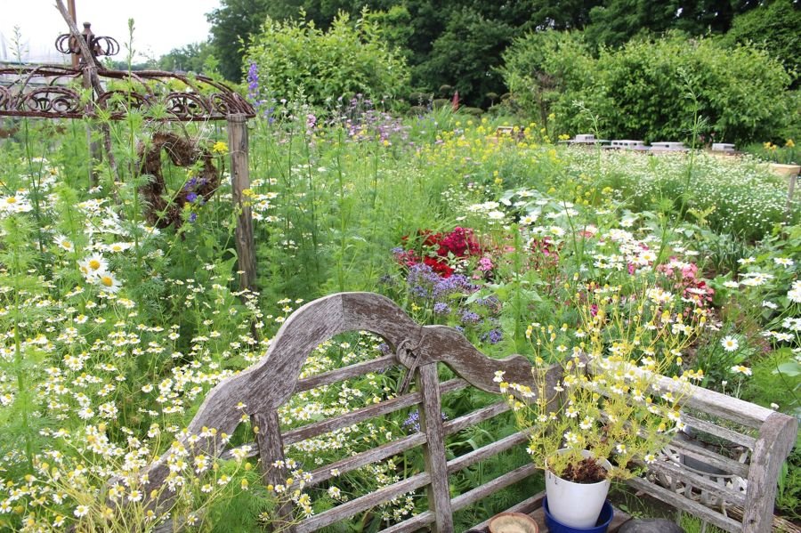 バラを中心にしたガーデンは現在5つあり、春バラの見事な庭、オールドローズの美しいテラスの庭、80種のバラを春から初冬までつぎつぎに咲かせる名人芸のような庭、バラの花が映えるよう建物の外壁の色を決めた庭もあります。