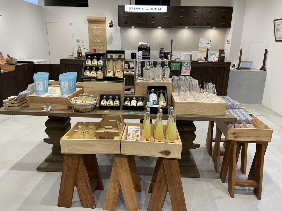 ショップにはドリンクカウンターがあり、ブランデーの試飲も可能です。お酒が飲めない方も、こだわりのアップルジュースやコーヒーの販売もしているので安心です。