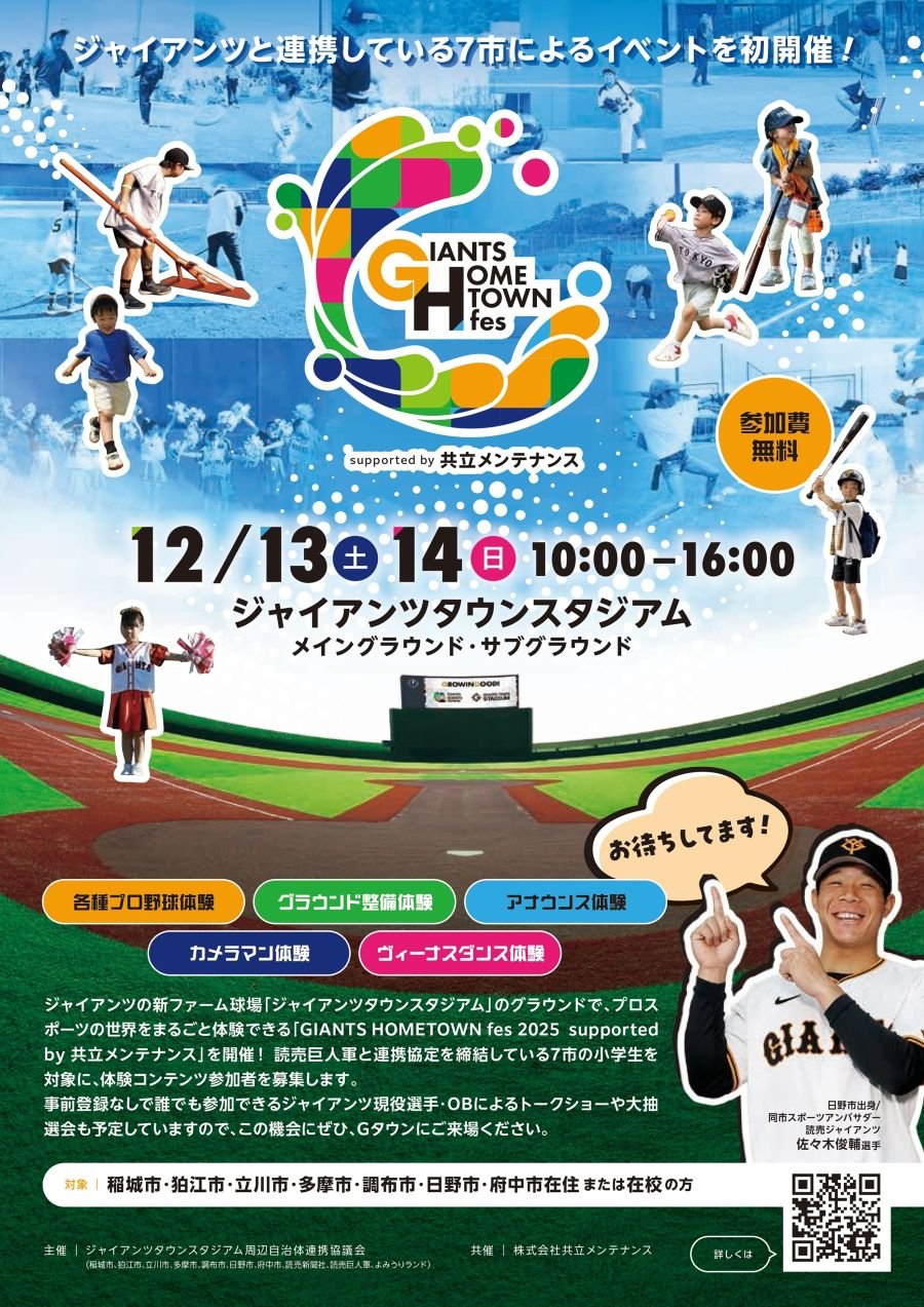 特に「TOKYO GIANTS TOWN」については、2027年のグランドオープンに向け、よみうりランドや読売巨人軍等とともに様々なイベントを計画・実施しています。現在、「いなぎデジタルスタンプラリー」を開催中です!稲城市の観光資源を巡りながら景品にご応募ください!