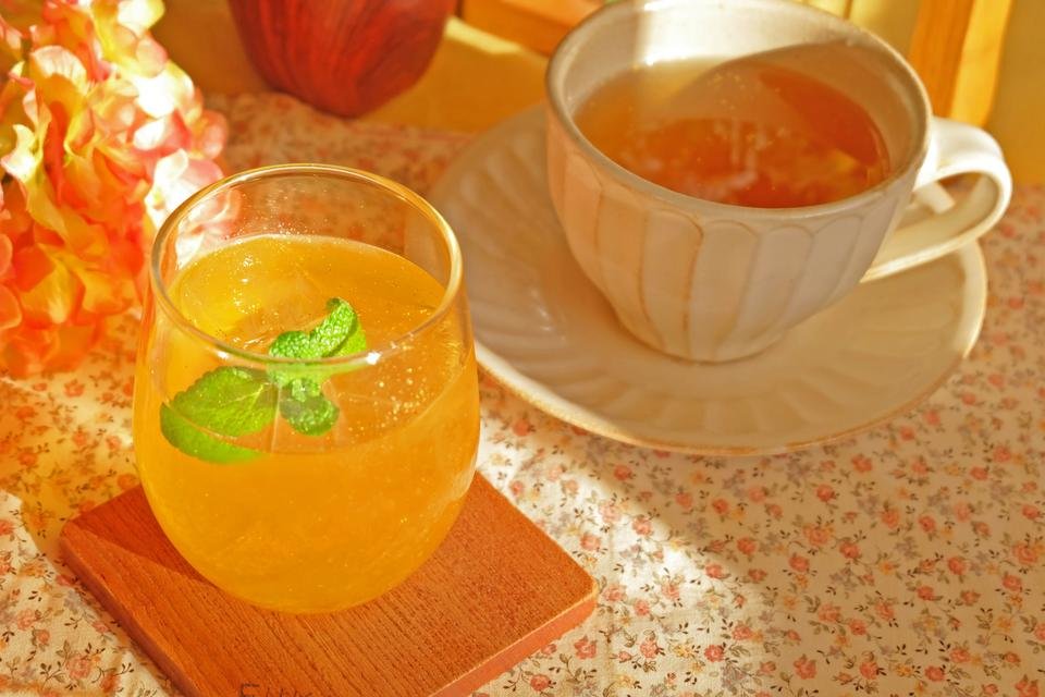 まずは、金粉入りの「妖精のゆずりんご」から。妖精が舞ったようなキラキラ輝くドリンクです。爽やかなゆずの香りと、りんごのやさしい甘みが溶け合う一杯。ゆずのほろ苦さがアクセントになり、すっきりとした後味が楽しめます。