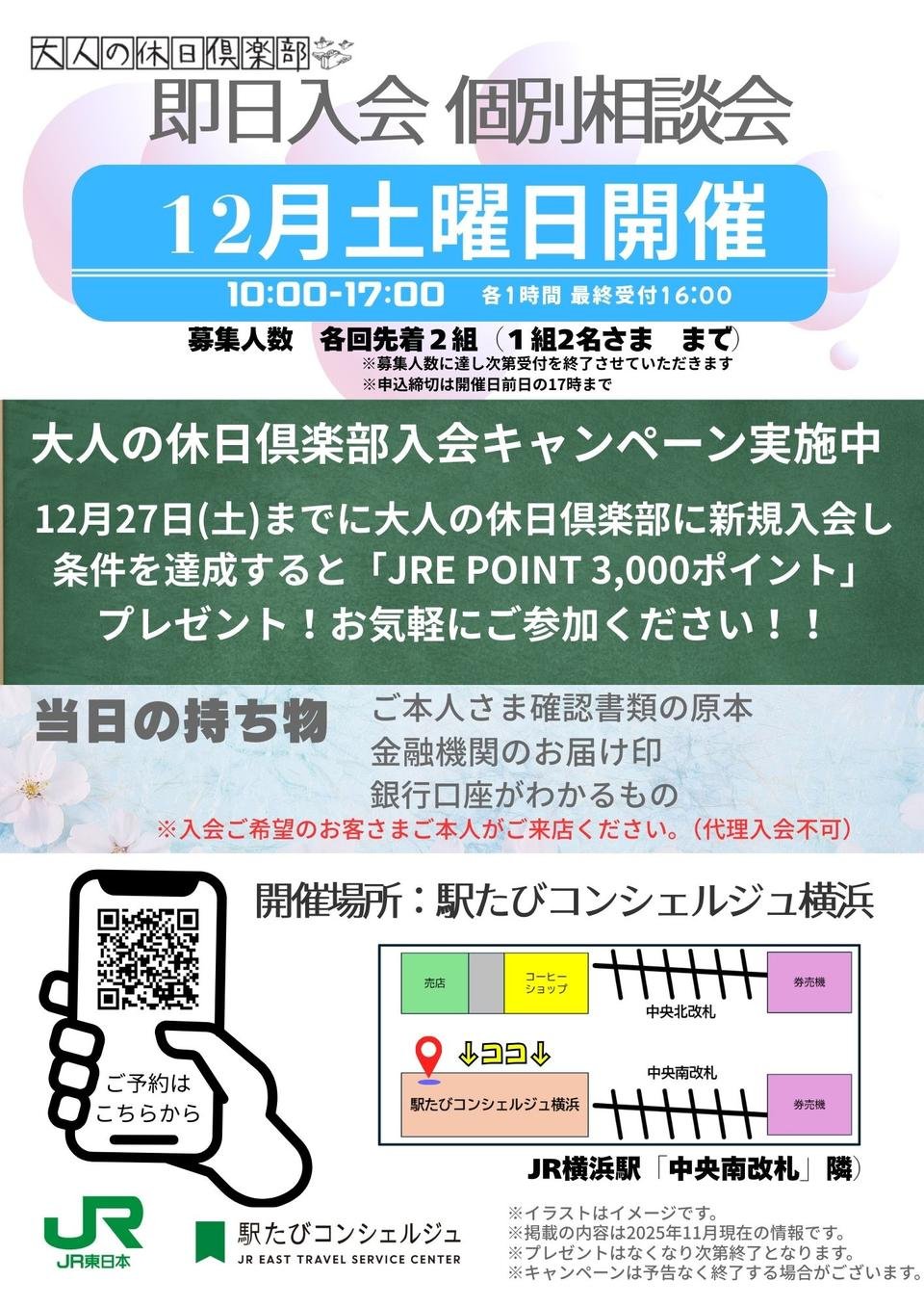 さらに!!12月27日(土)までに「大人の休日倶楽部」に新規ご入会いただき、条件を達成された方には、もれなくJRE POINT 3,000ポイントをプレゼント!