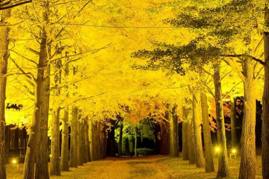昼と夜のいちょう並木を楽しむ
