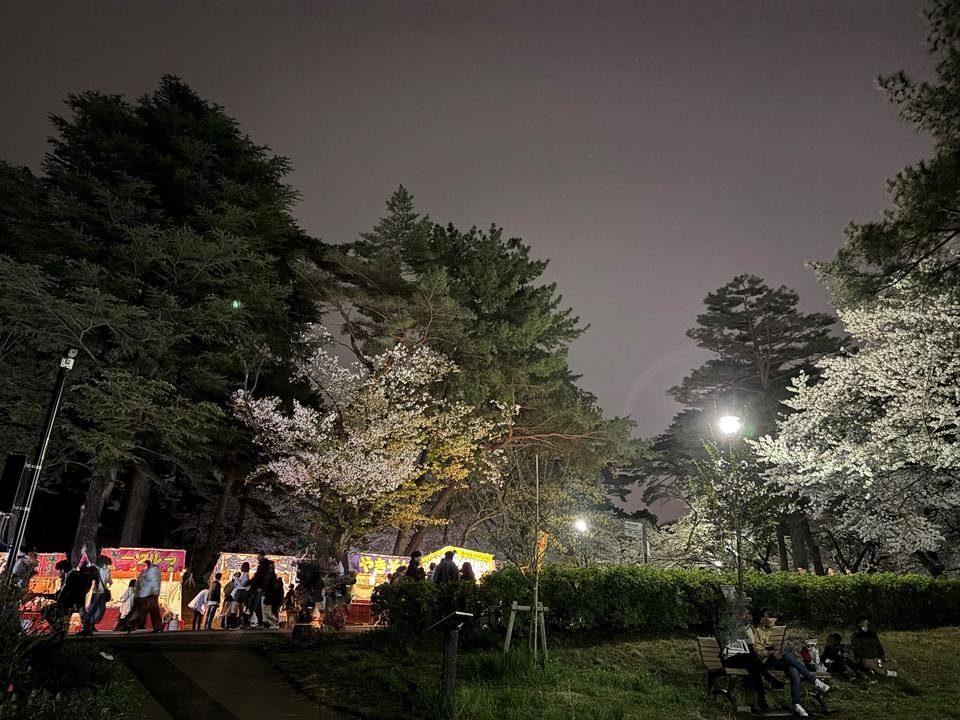 桜の見頃の期間には、屋台の出店があるので、レジャーシートを敷いてご飯を食べながらのお花見もできます♪夜にはライトアップされた夜桜も楽しめます。