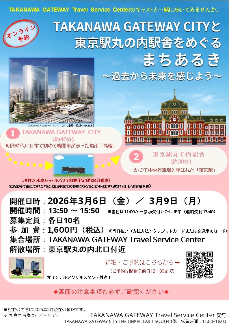 【2日間限定!グランドオープン直前特別企画】「TAKANAWA GATEWAY CITYと東京駅丸の内駅舎をめぐるまちあるき~過去から未来を感じよう~」