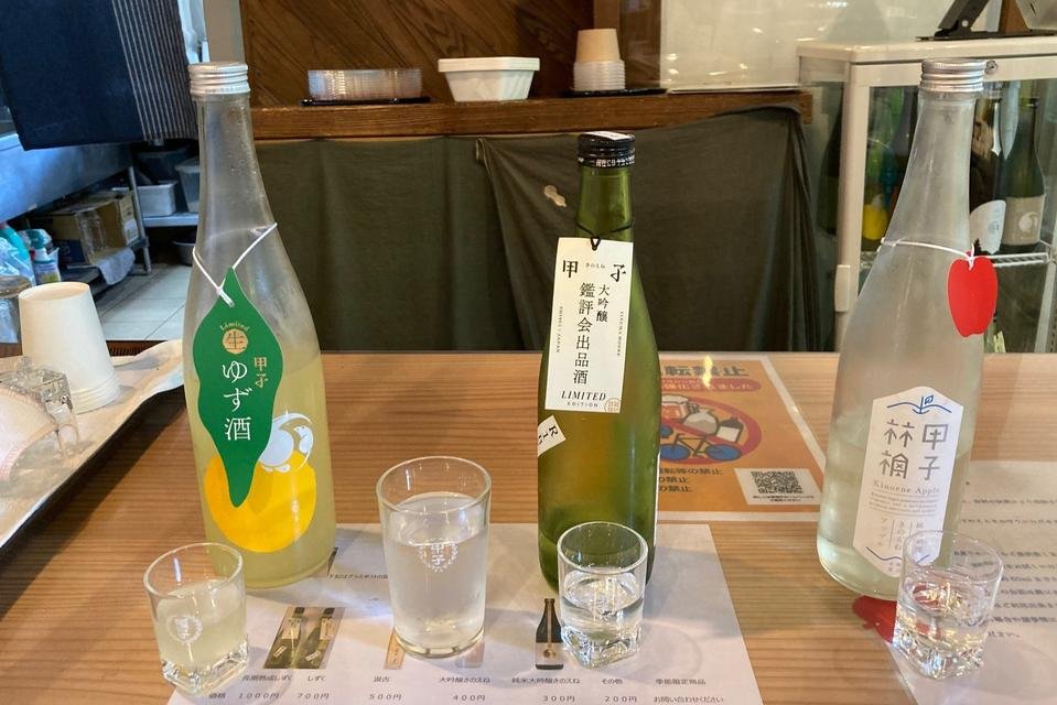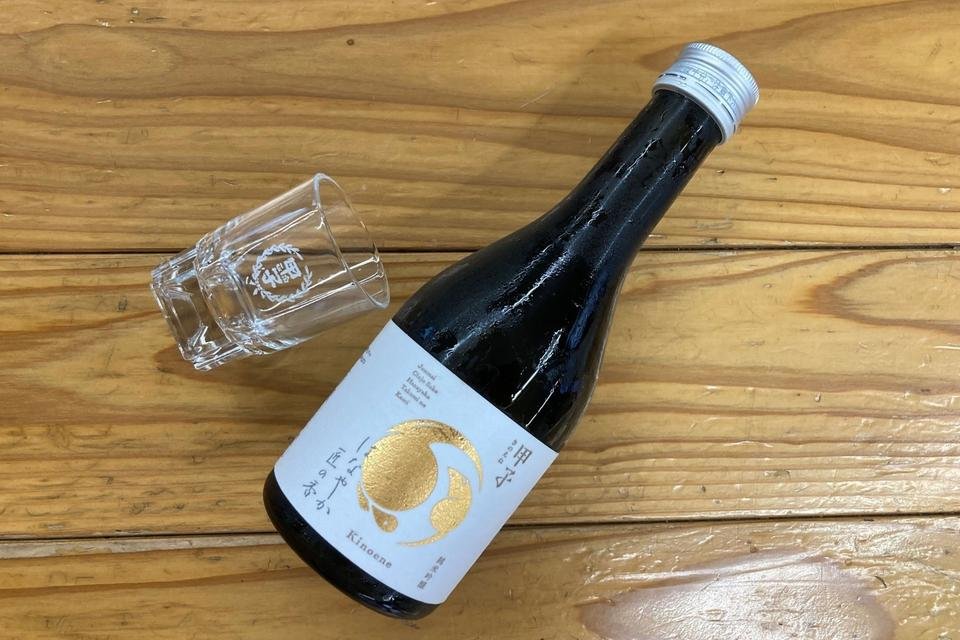 春から秋限定の「きのえねアップル」は、口に含んだ瞬間、リンゴの香りが口いっぱいに広がります。果汁は使っていないものの、酵母由来のリンゴ酸をベースとした甘さと清涼感のバランスがよく、日本酒が初めての方にもぜひ試してもらいたい一品です。