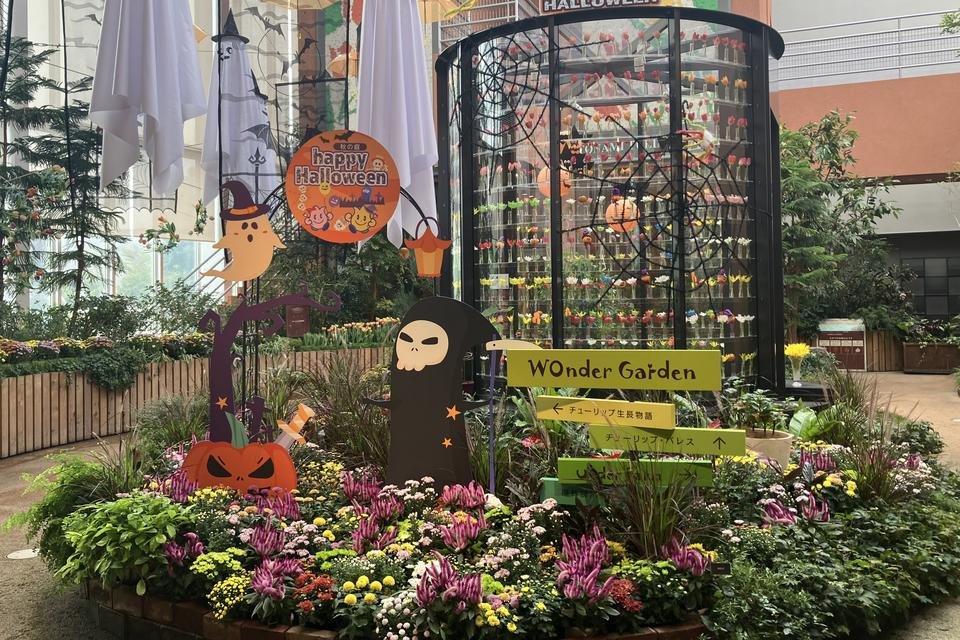 足を踏み入れると、視界すべてがチューリップに彩られる「花の世界」。四季の花とのコラボレーションも行われ、訪れるたびに違った景色を楽しめます。