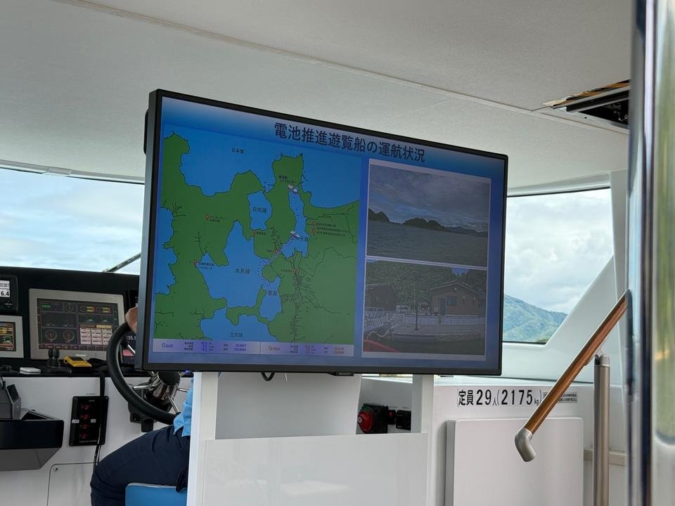 電池推進遊覧船についてはガイドさんが乗船の際に詳しく説明してくださいます。エンジン音がしないため、湖の静かな雰囲気を味わうことができます。