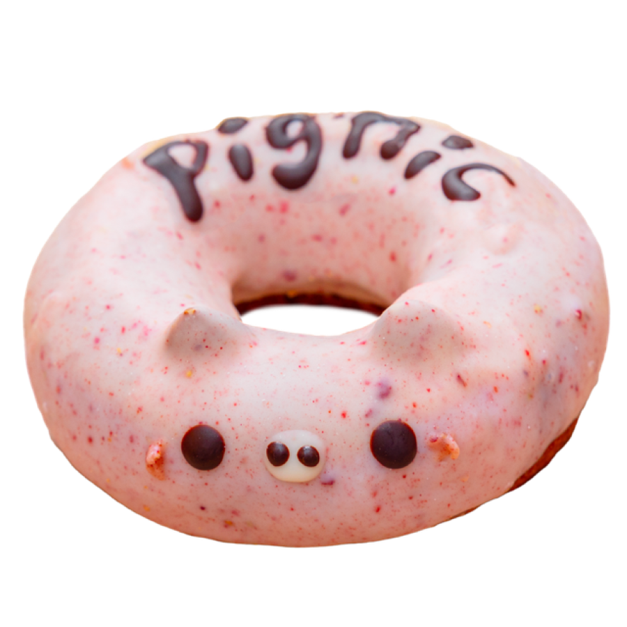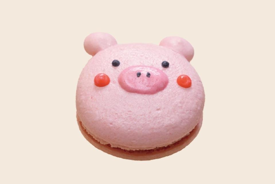 パティシエールの店長がひとつひとつ心を込めて手描きしてくれているpigちゃんマカロンは、卵白とアーモンドパウダーのサクッとした生地にもちもちのクリームの組み合わせが絶品。保存料や合成甘味料は使用していません。かわいくて食べるのが忍びない!