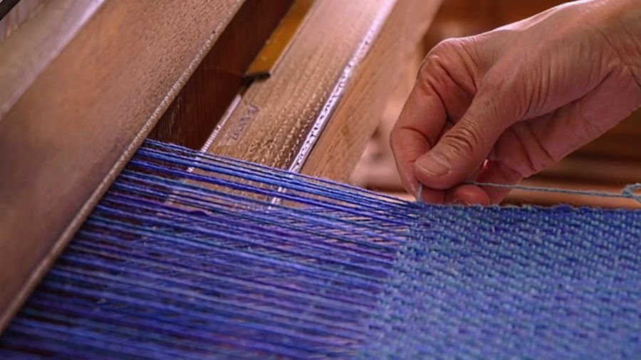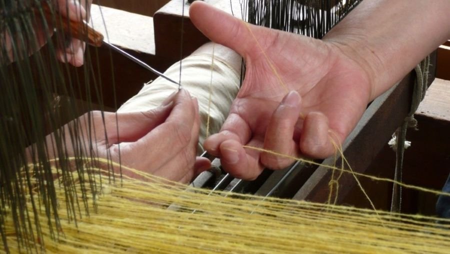 8.検反・補修:織り違いや結び目などが無いかチェックし、手直しをする。