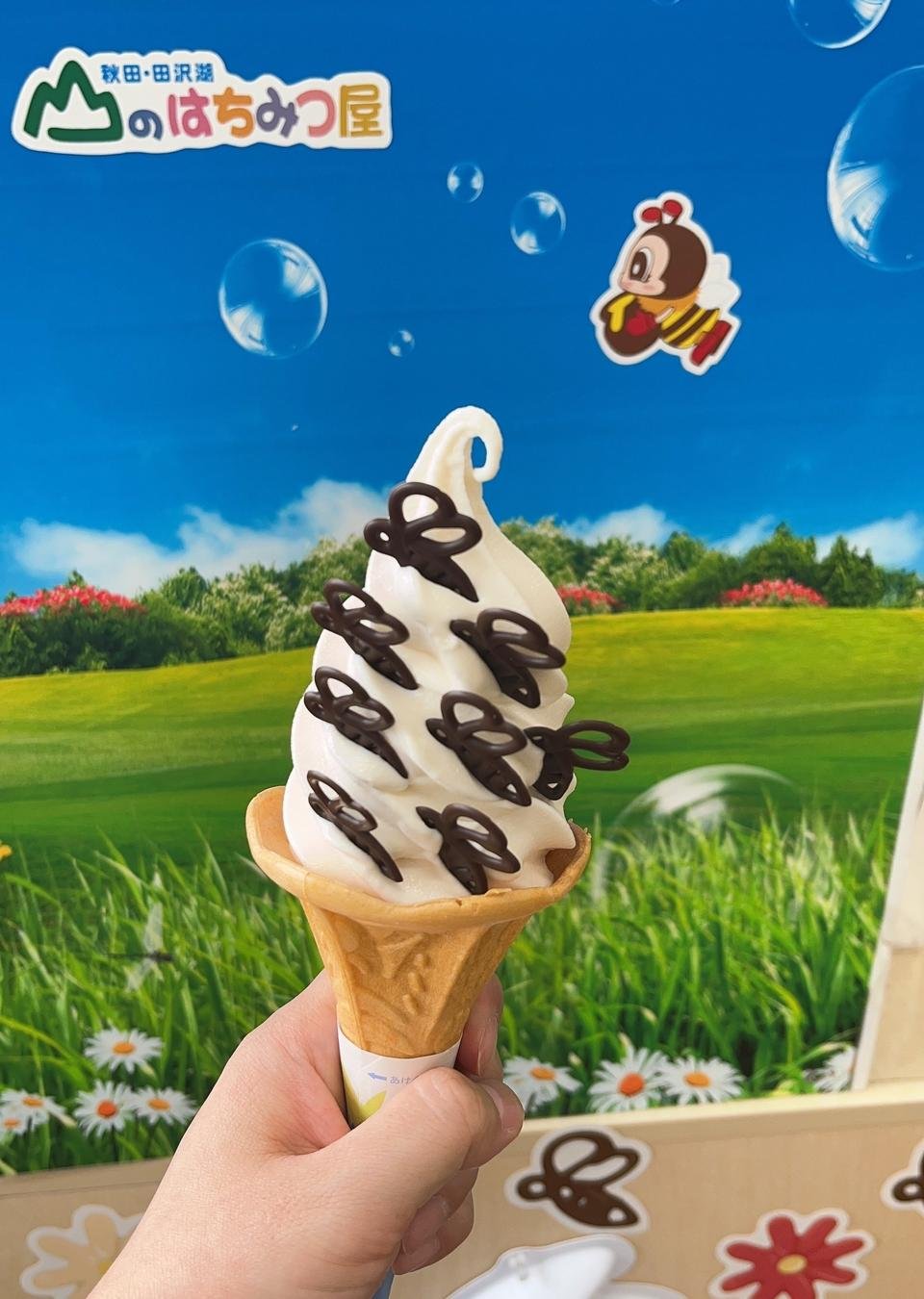 みつばちチョコがちょこんと乗っている「はちみつソフト」です。