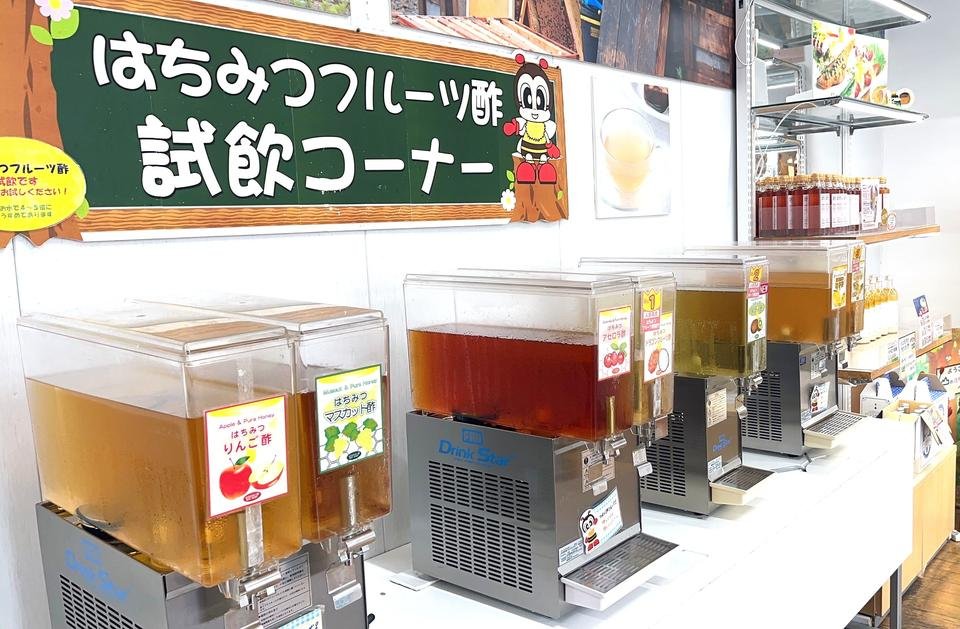また、はちみつ入りのフルーツ酢の試飲もでき、気に入った味を購入することができます。美味しすぎて全種類購入したくなりますね♪