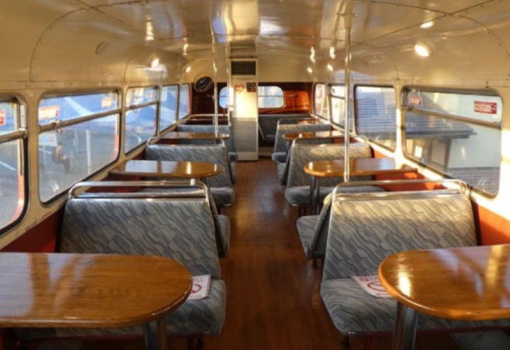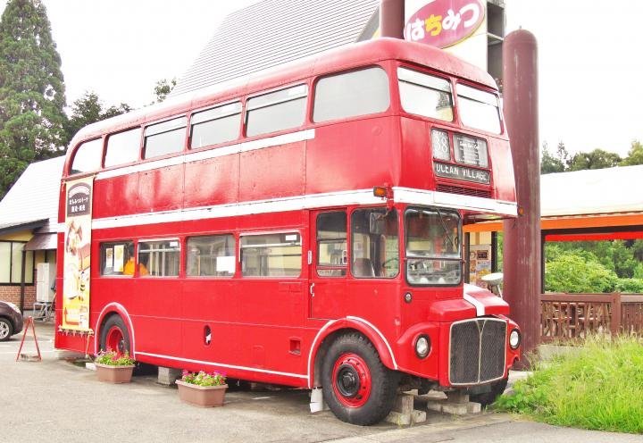 この赤くてかわいい2階建てのロンドンバスの中は、冷暖房完備でカフェスペースになっており、誰でも無料でご利用できます。レトロな雰囲気の中で食べるはちみつソフトは、ほんのりはちみつの味がして本当においしいです!!