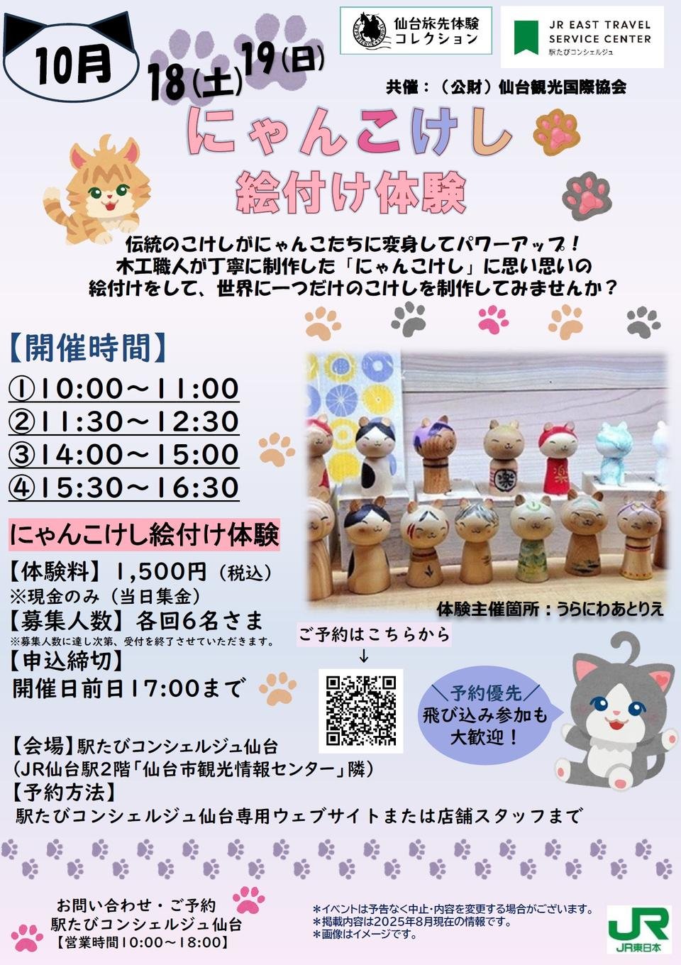 2025年10月18日(土)・19日(日)にゃんこけし絵付け体験 各日4回