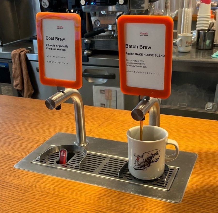 ホットコーヒーとコールドブリューは、購入後に渡されるカップにセルフで注ぐスタイルです。コーヒータップをオーストラリアから導入していて、そのクイックさは、乗降客の多い新宿駅ならではです。
