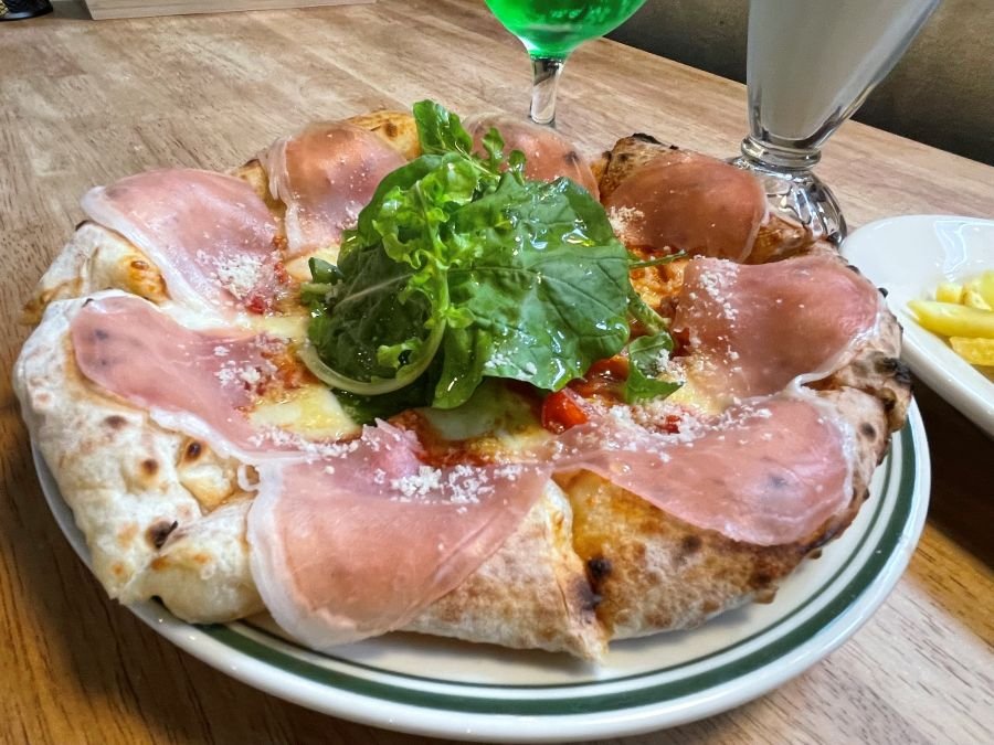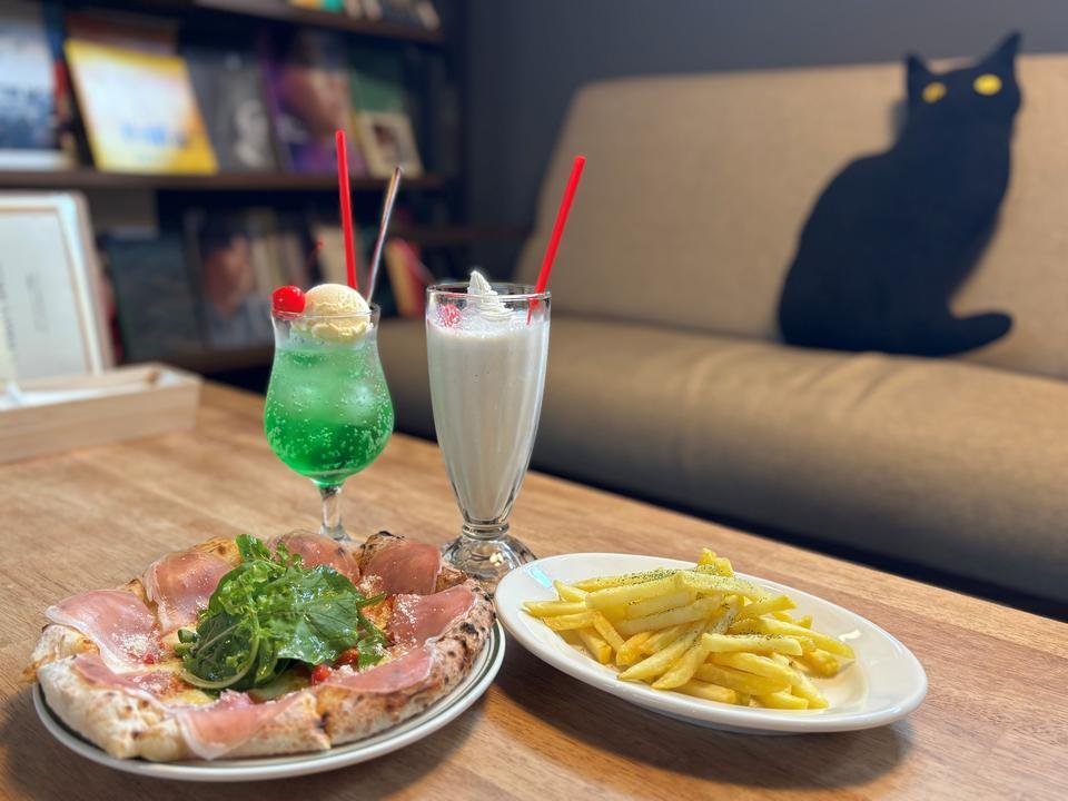 実際に「生ハムとルッコラ」のピザ、「クリームソーダ」「バニラシェイク」「フライドポテト」をいただきました♪