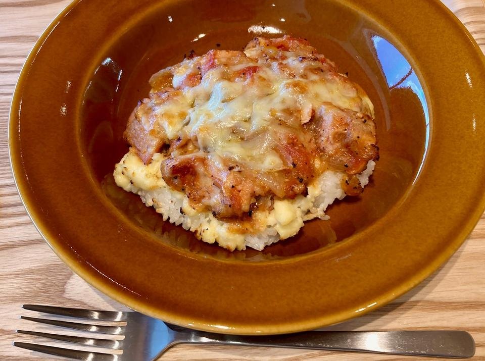 チキントマトドリアは、チキンとトマトの旨味がぎゅっと凝縮されていて、間違いのないおいしさ。熱々はもちろんですが冷めてもおいしくいただけそうです!