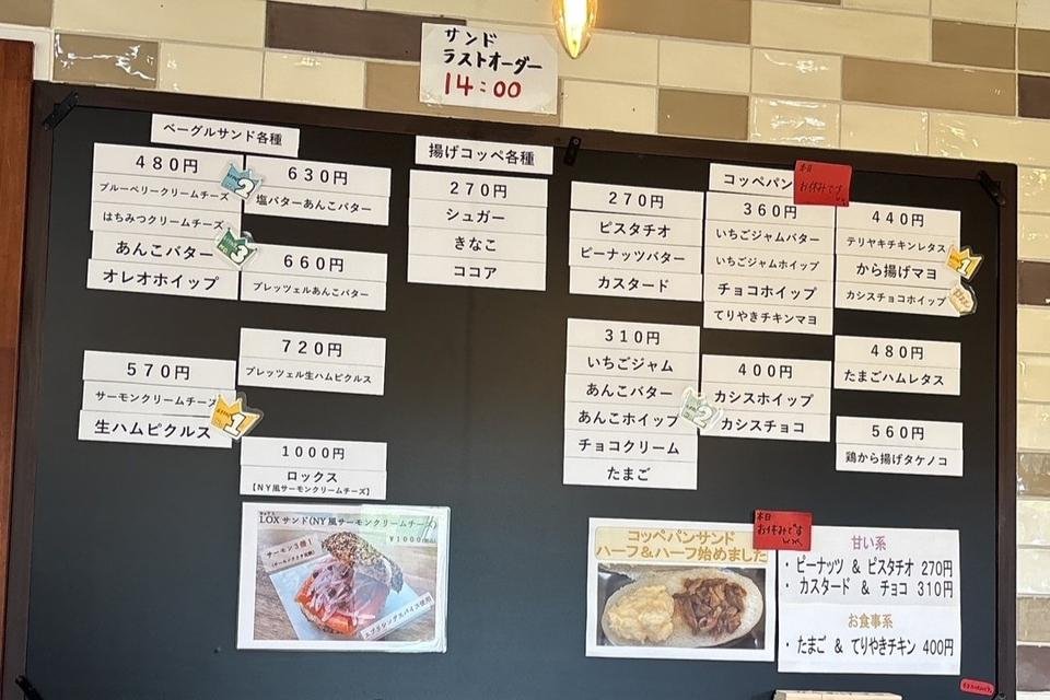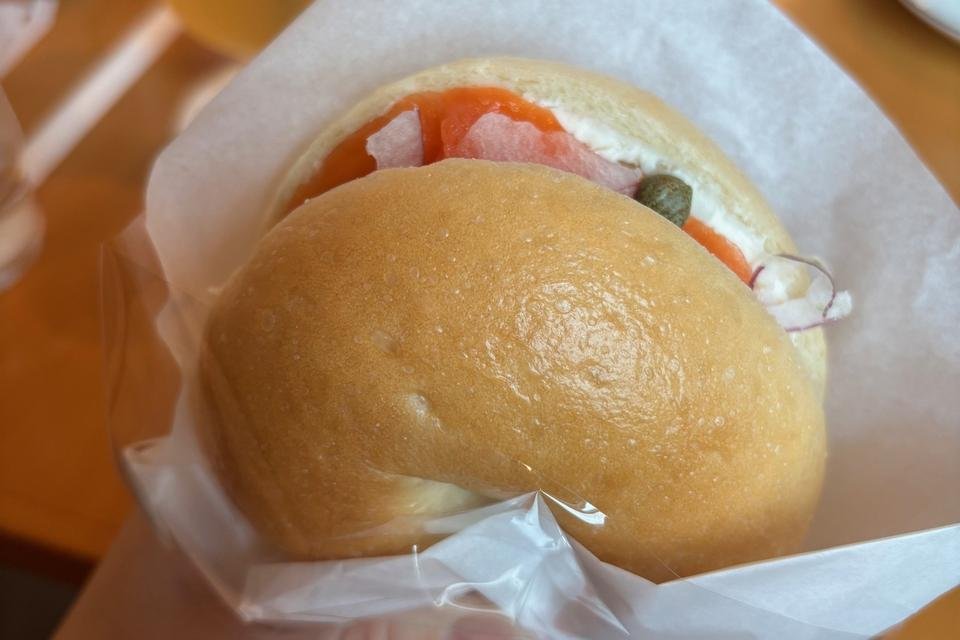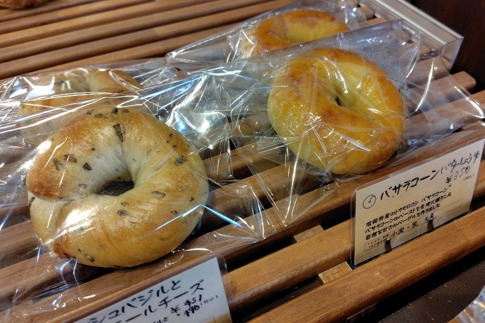 お店の名前がとってもかわいいですよね♪「ポムミエル」という言葉、皆さんは聞きなじみがないと思いますが、実はフランス語の「ポム=りんご」と「ミェル=はちみつ」を組み合わせた造語なんだそうです。「Bagle&Cafeポムミエル」さんの店内で販売しているベーグルは、ベーグル生地を20時間低温発酵させ毎日手作りで焼いているというこだわりも。