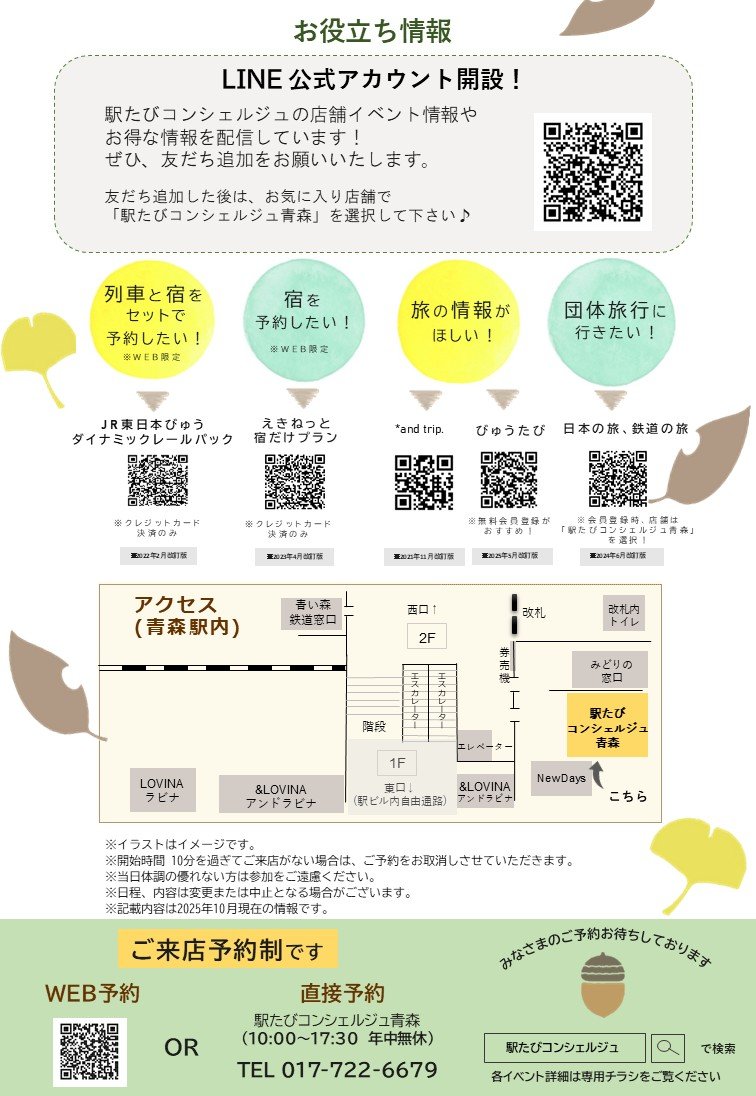 LINE公式アカウントも出来ました!イベント情報等もお知らせいたしますので、ぜひ友だち追加をお願いします♪(お気に入り店舗は「駅たびコンシェルジュ青森」を選択!)