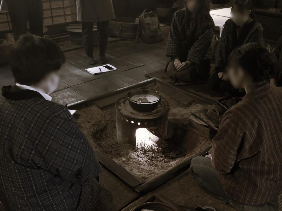 囲炉裏で団らん白川村の郷土料理体験『すったて汁づくり』