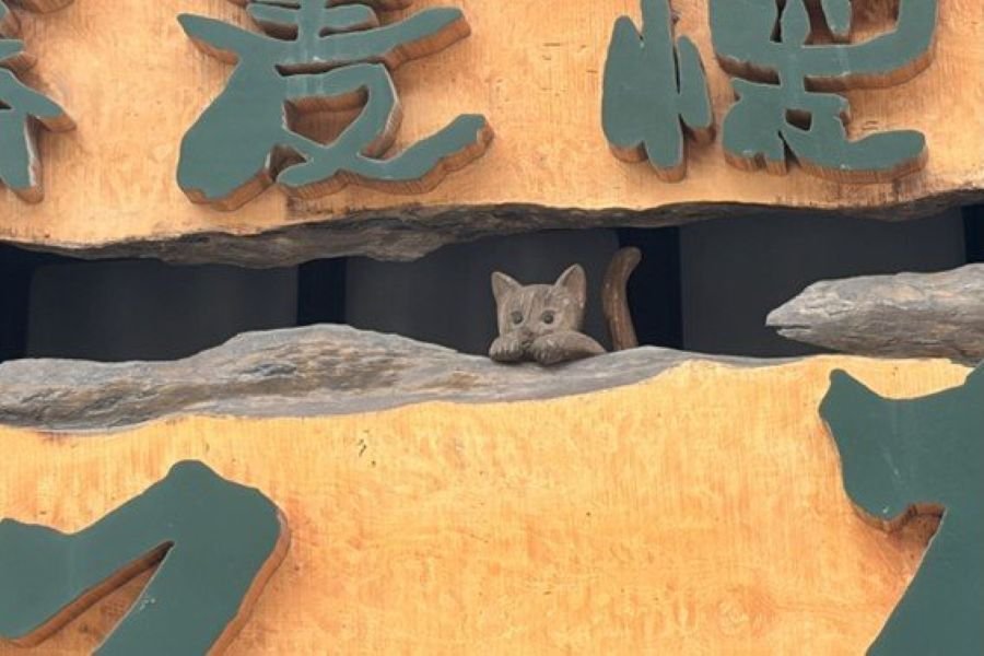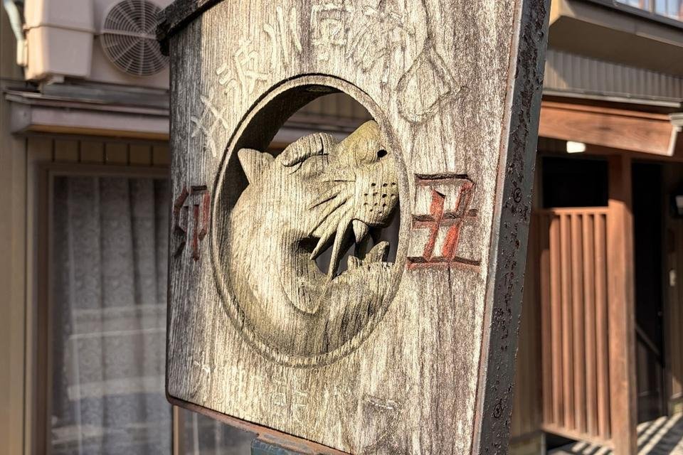 瑞泉寺へと続く参道「八日町通り」には、数多くの木彫刻の工房があり、通りを歩くとたくさんの木彫りの看板や木彫りのバス停の標識が見えてきます。