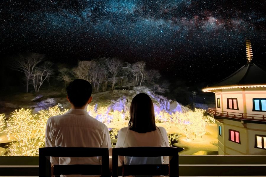 その5.16万球の光が水鏡に映り込む圧巻の景色を、一番高い場所から見渡す「光の展望台」