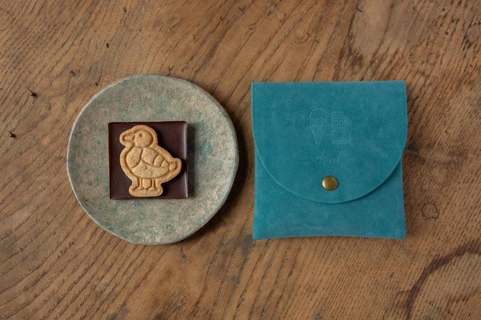 カモのクッキーと板チョコレート