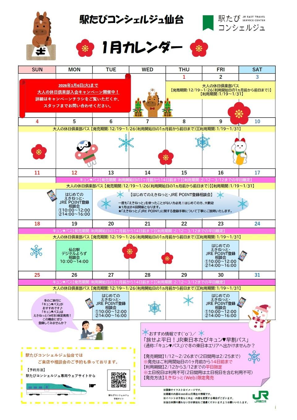 ご予約は下記「1月カレンダー」にて確認ください。