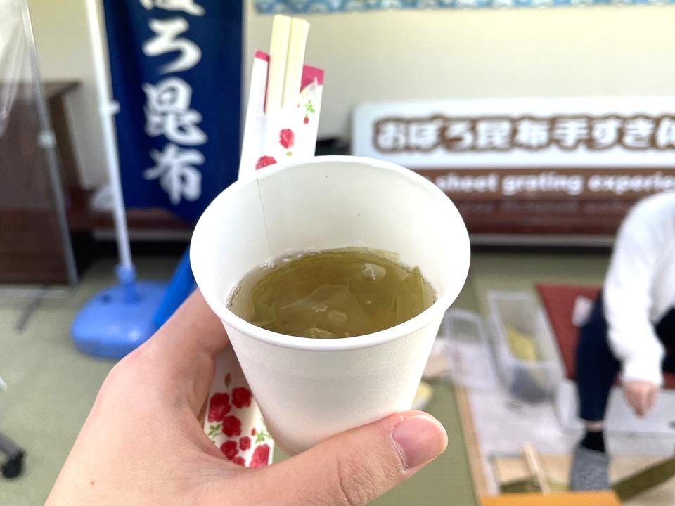 なお今回の体験中には、おぼろ昆布のお吸い物も振舞っていただきました。削りたての素材の味と、昆布の風味残る温かいおつゆを味わうことができ、心も身体も温まりました。