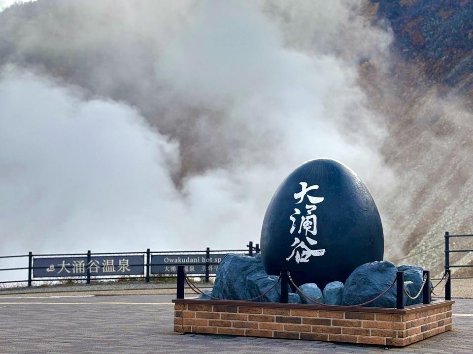 また、「大涌谷くろたまご館」の正面玄関前には、黒たまごのオブジェも設置されています。運がよければ富士山を見ることもできるため、訪れた記念や、購入した黒たまごと一緒に1枚撮影してはいかがでしょうか。