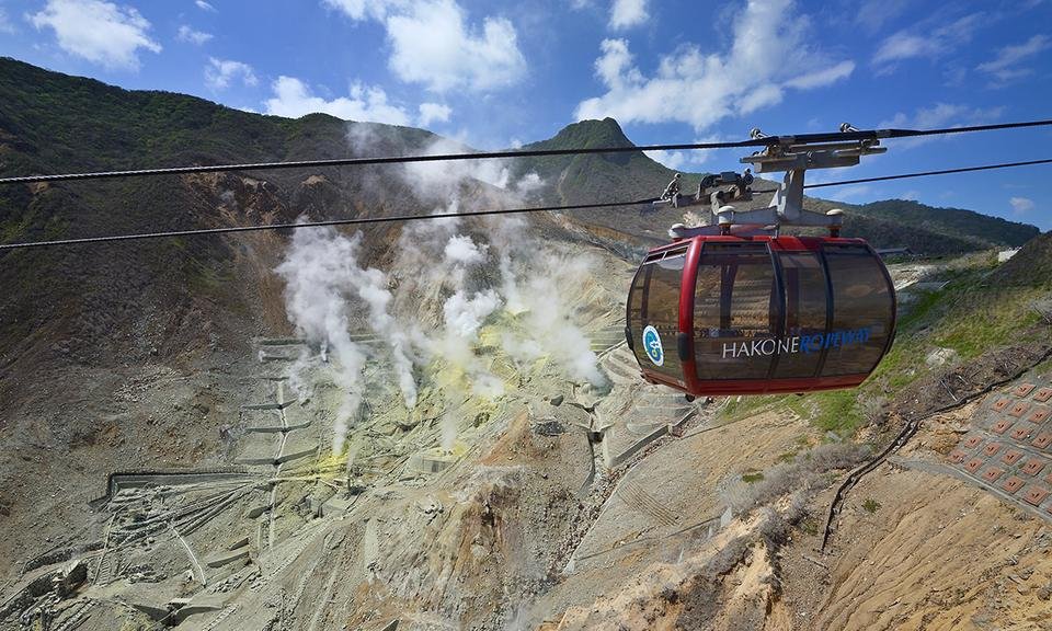 箱根登山線「強羅駅」より箱根登山ケーブルカーにて「早雲山駅」下車後、箱根ロープウェイにて「大涌谷駅」下車