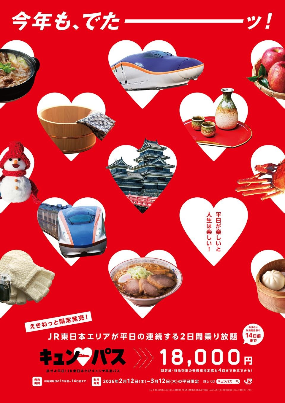 平日の旅行は「キュン♥パス」で!【旅せよ平日!JR東日本たびキュン♥早割パス】