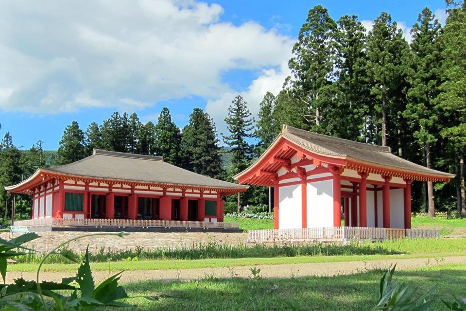 発掘調査の成果をもとに、平成20年には金堂、翌年には中門が復元され、かつての大伽藍の面影を現代に感じられるようになりました。復元された建造物や薬師如来坐像をゆっくりと眺めながら、歴史に想いを馳せてみてはいかがでしょうか。また、敷地内のカフェ「bandai coffee」ではおいしいコーヒーが楽しめますよ。
