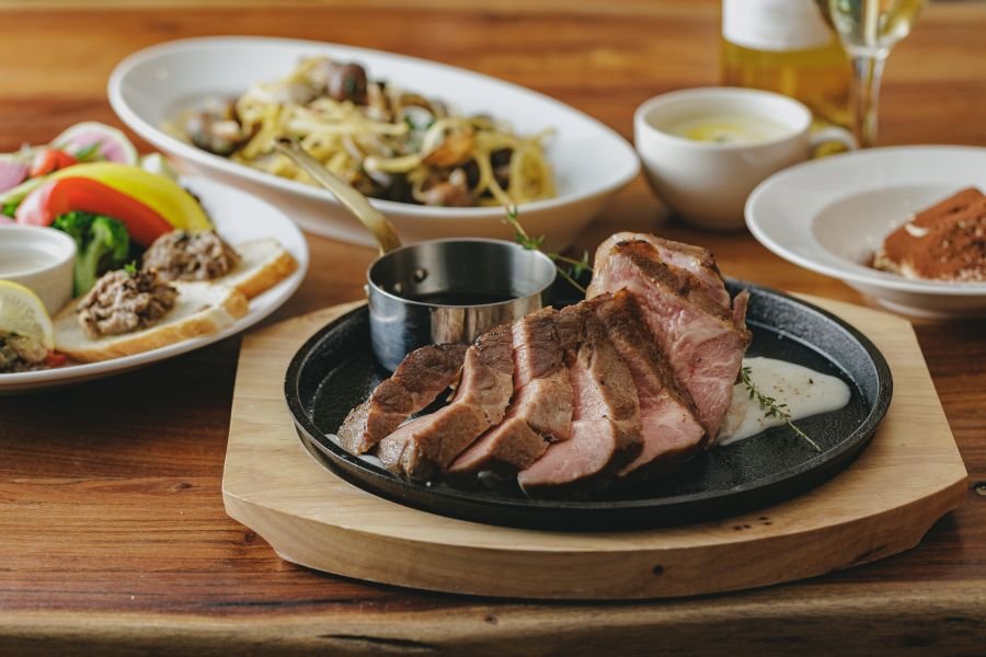 夕食は、房総産の金目鯛をはじめ、旬の魚介や千葉県産のブランドポーク、館山ジビエなど、地産食材を贅沢に使った一皿を洋のスタイルでご用意。