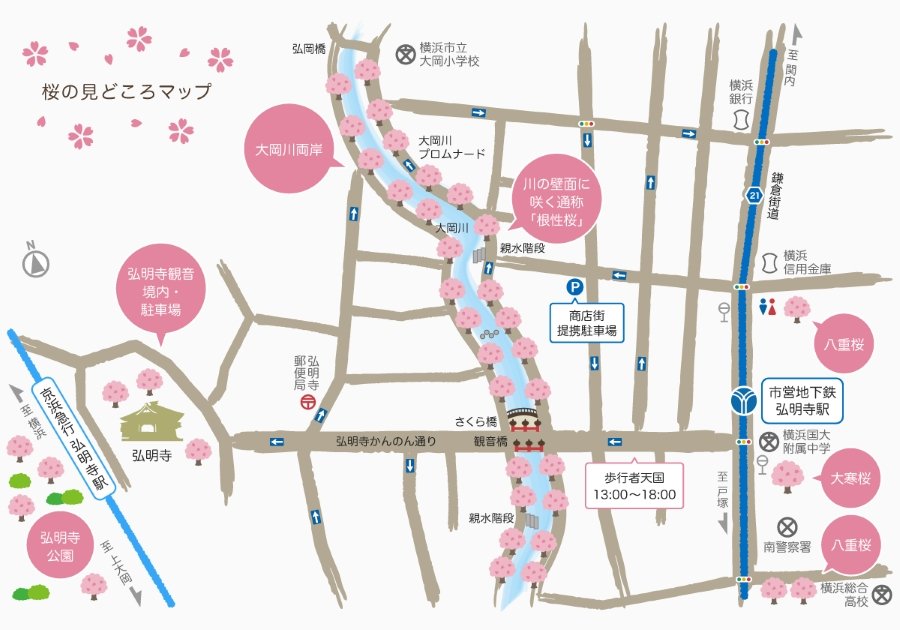 今回は、暖かな春のお出かけにぴったりな「大岡川プロムナードの桜」そして「弘明寺かんのん通り商店街」をご紹介しました!ぜひ、横浜の桜をお楽しみください!