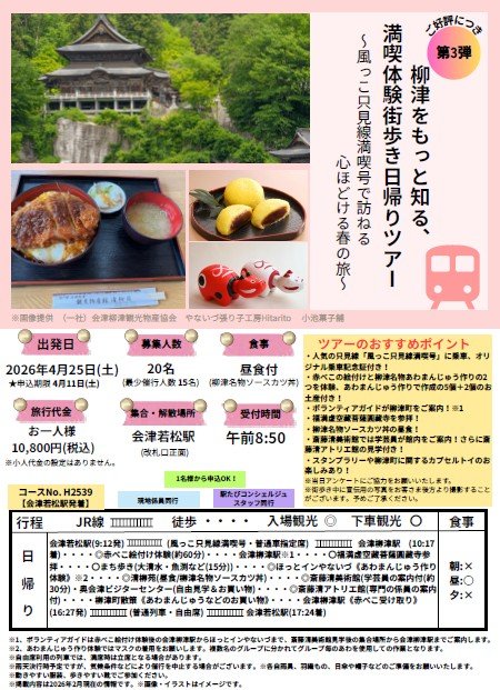 2026年4月25日(土)出発 柳津をもっと知る、満喫体験街歩き 日帰りツアー【福島県・柳津町】
