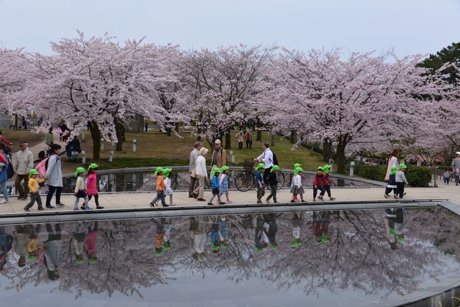「鐘木地区」は、ソメイヨシノの見頃が終わる頃にヤエザクラが咲き、2回目のお花見を楽しむことができます。公園内を進んでいくと「花見広場」があり、見渡す限りの桜の下でお弁当を広げてお花見を楽しむこともできます。また、四季折々の風景を楽しめる「いやしの庭園」という日本庭園や広場など様々な施設がありますので、園路を散策するのもおすすめです。