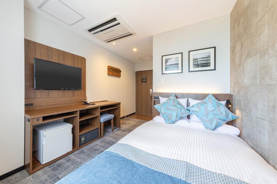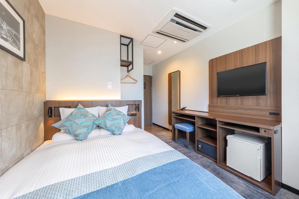 スーペリアセミダブルのベッド幅は120cm、スーペリアダブルのベッド幅は140cm、客室は白い壁に木目調の家具、寝具は白に水色を基調としたさわやかな色合いです。
