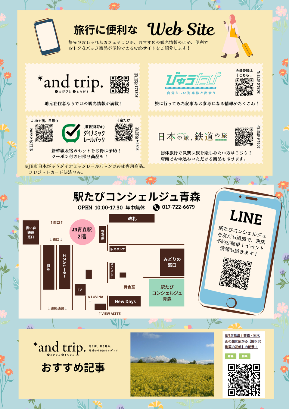 LINE公式アカウントも出来ました!イベント情報等もお知らせいたしますので、ぜひ友だち追加をお願いします♪(お気に入り店舗は「駅たびコンシェルジュ青森」を選択!)
